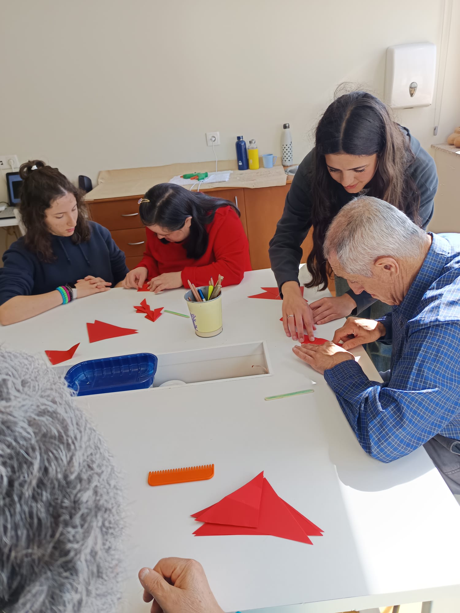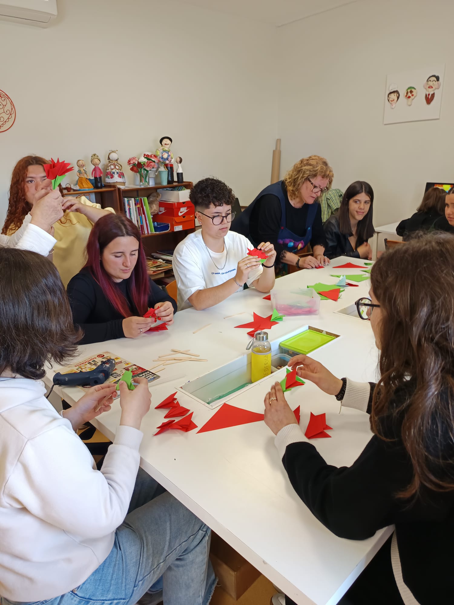 Durante a visita, os estudantes tiveram a oportunidade de conhecer os diversos ateliers desenvolvidos na unidade, onde clientes participam em atividades ocupacionais e criativas. Num momento simbólico e de grande significado, alunos e clientes colaboraram na elaboração de cravos vermelhos, assinalando a proximidade das comemorações do 25 de abril e reforçando valores como a liberdade, a cidadania e a inclusão.